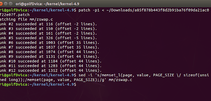 sed -i 's/memset_l(page, value, PAGE_SIZE \/ sizeof(unsigned long));/memset(page, value, PAGE_SIZE);/g' mm/zswap.c